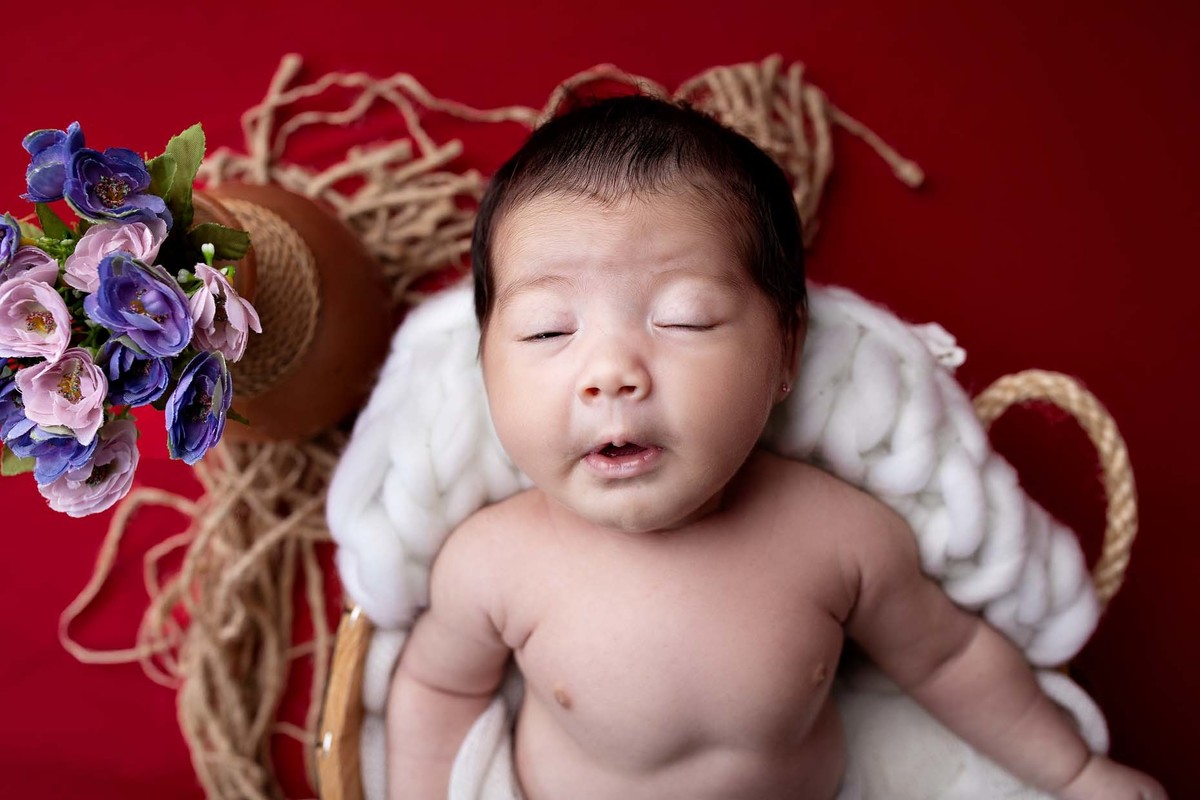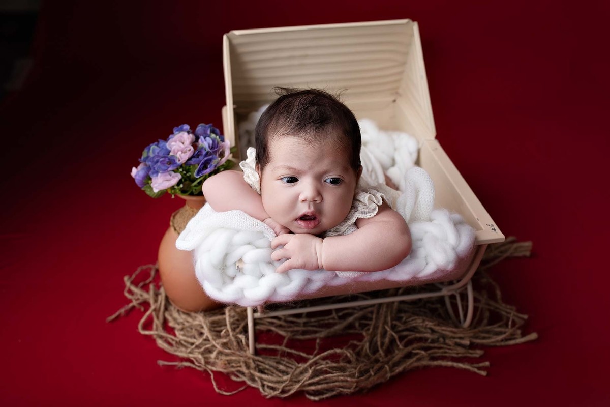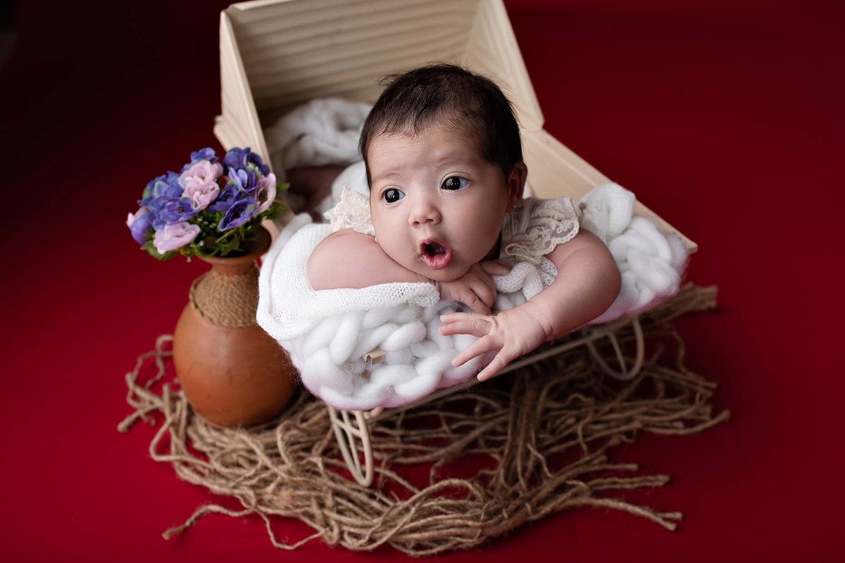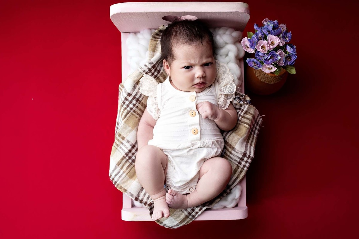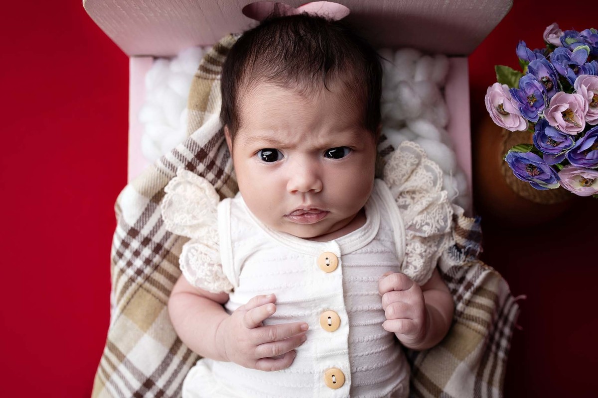 Maeve esbanjando fofura em seu ensaio de 1 mês